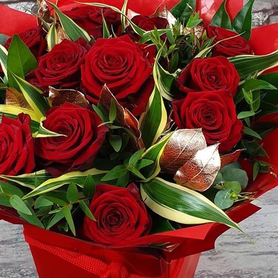 A joyful burst of festive colour arranged with vibrant reds, rich greens and seasonal textures for a warm Christmas feel. Designed using fresh flowers and a natural style, perfect for sending festive cheer.